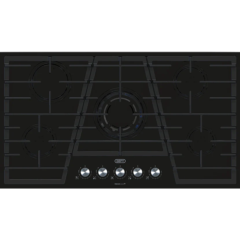 For a sleek, space-saving, energy-efficient gas hob that will look fantastic on any kitchen counter – look no further than the Defy 90cm 5G on Glass Hob. The cast iron 4-gas burners and 1 wok burner, neatly set against a classy black glass design, perfectly complements this modern hob for a stylish finish to any kitchen. With top features like the flame failure safety device, precise flame burner controls, and continuous cast iron pan support, you are choosing one of Defy’s cutting-edge designs that will benefit your everyday cooking.